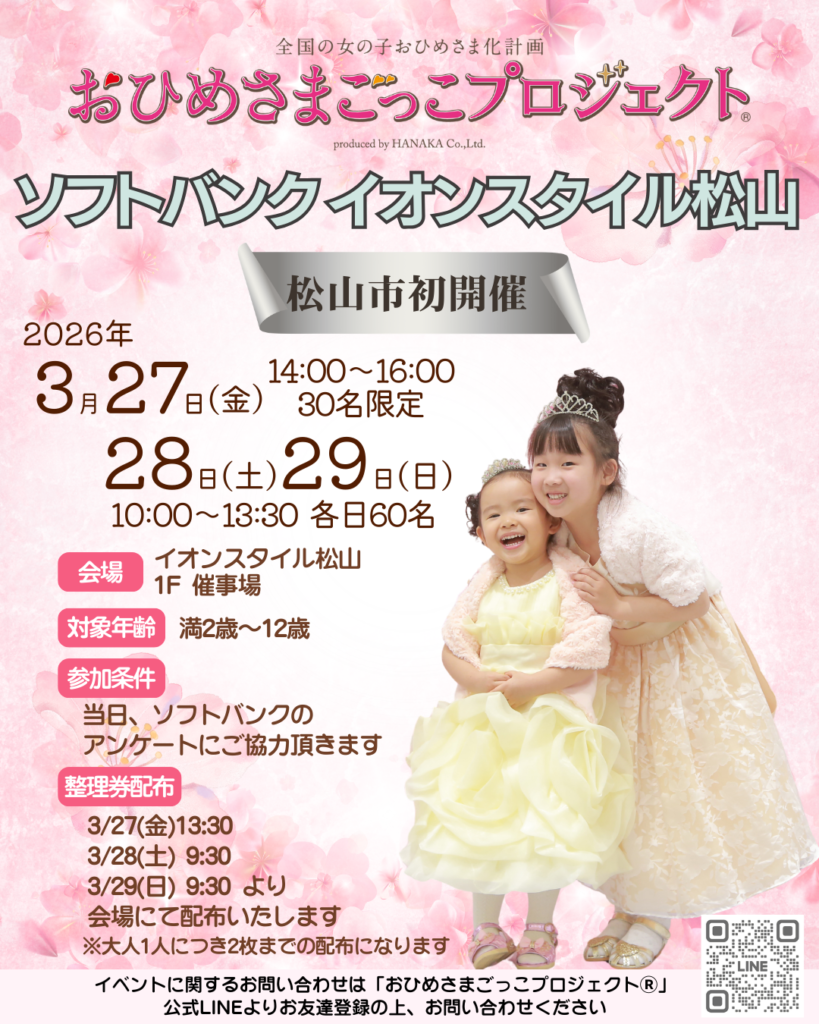 松山市初開催! 3月27日(金)~29(日)はソフトバンクイオンスタイル松山でプリンセス体験!