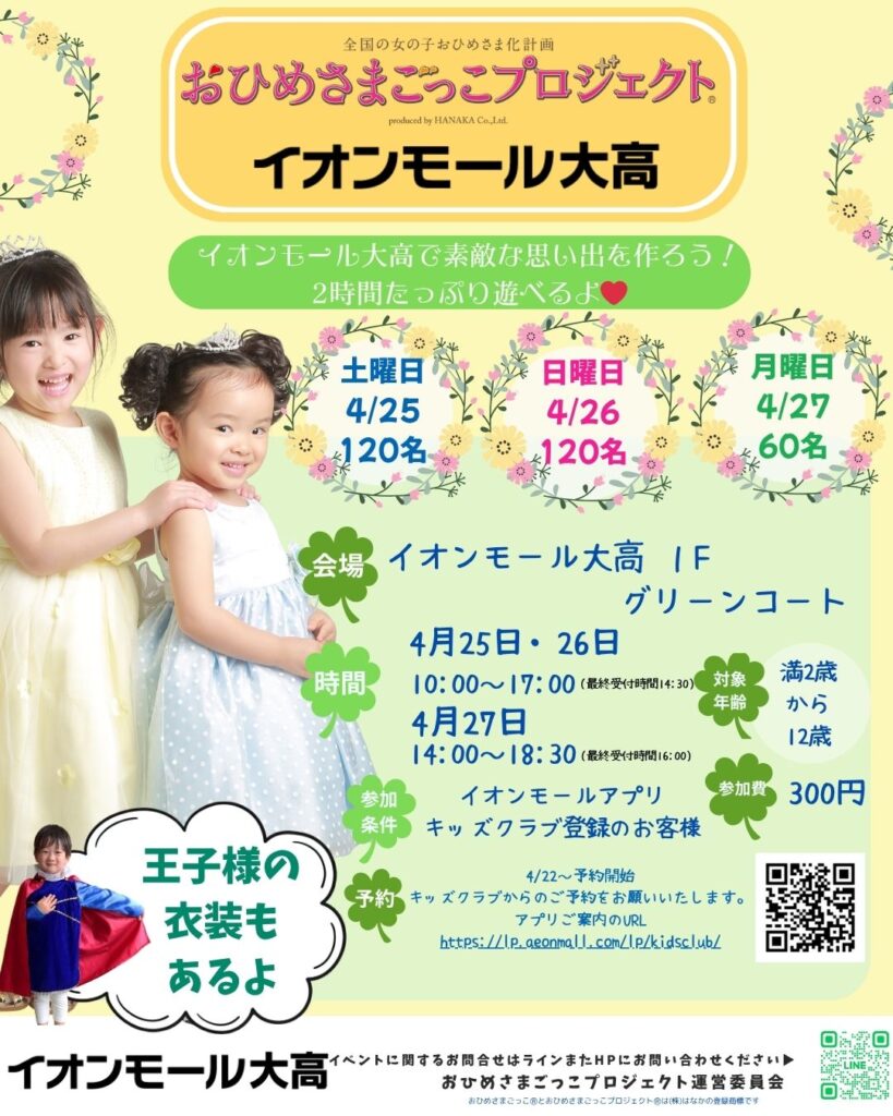 愛知県・イオンモール大高で、おひめさまごっこプロジェクト(R) 開催!